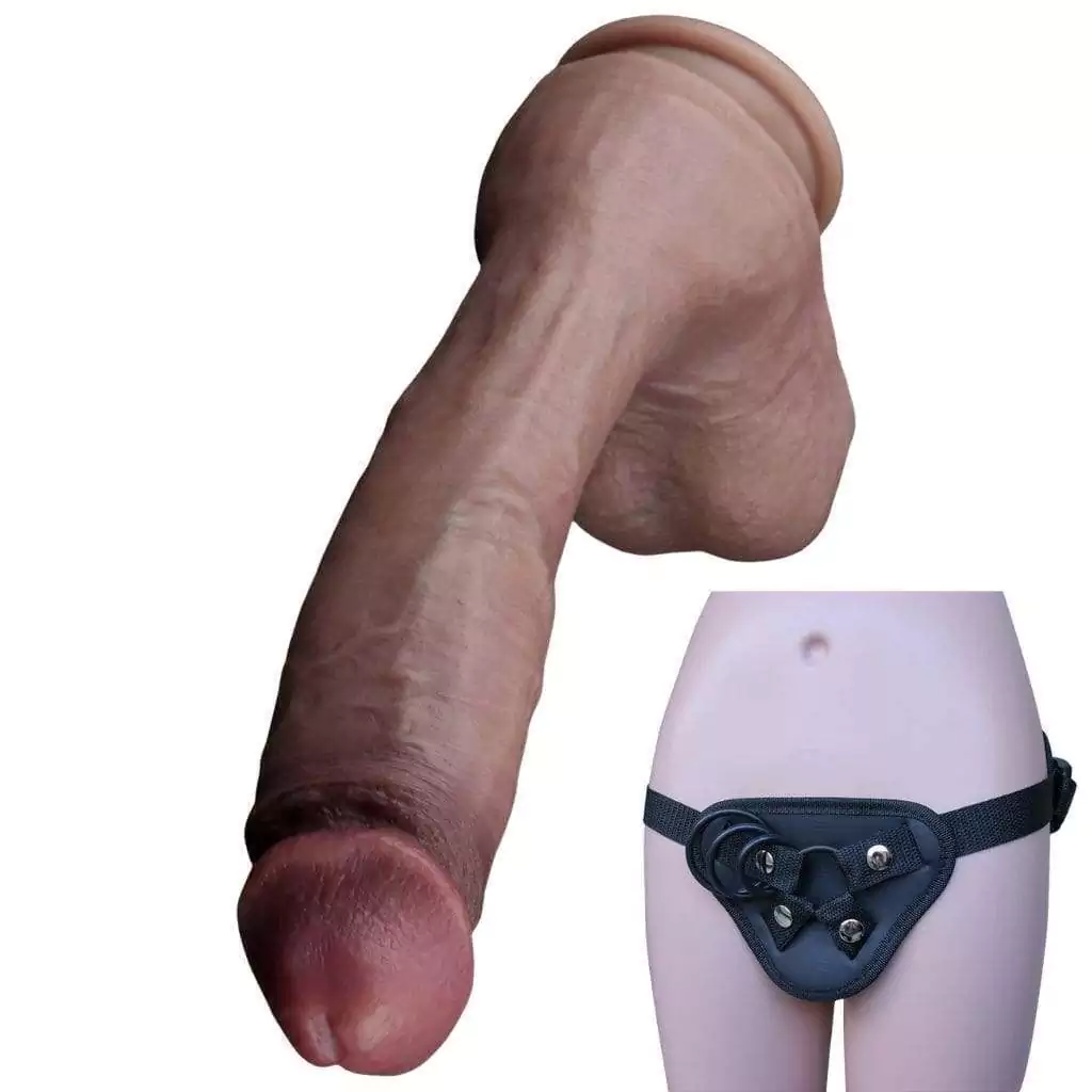 Pênis de Silicone de Camada Dupla Realista 27 x 5,3cm está disponível com ou sem a cinta para pênis e nas cores bege e marrom. Escolha a opção de sua preferência.