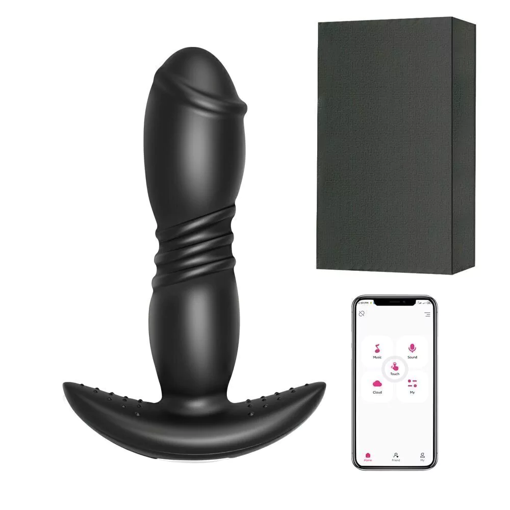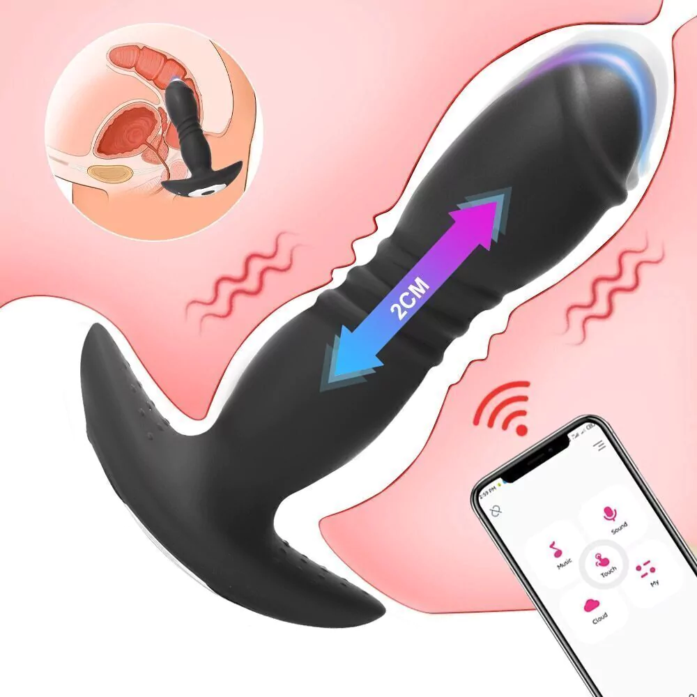 Plug anal com movimento telescópico e vibro controlado via bluetooth do seu celular ou controle remoto.