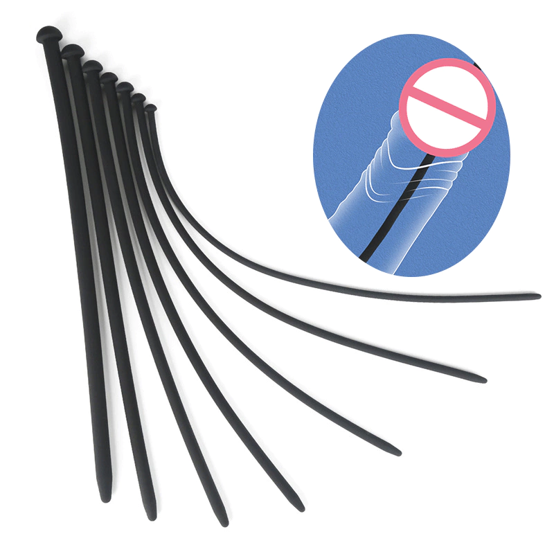 * Preto super longo masculino pênis plug uretral dilatador de silicone